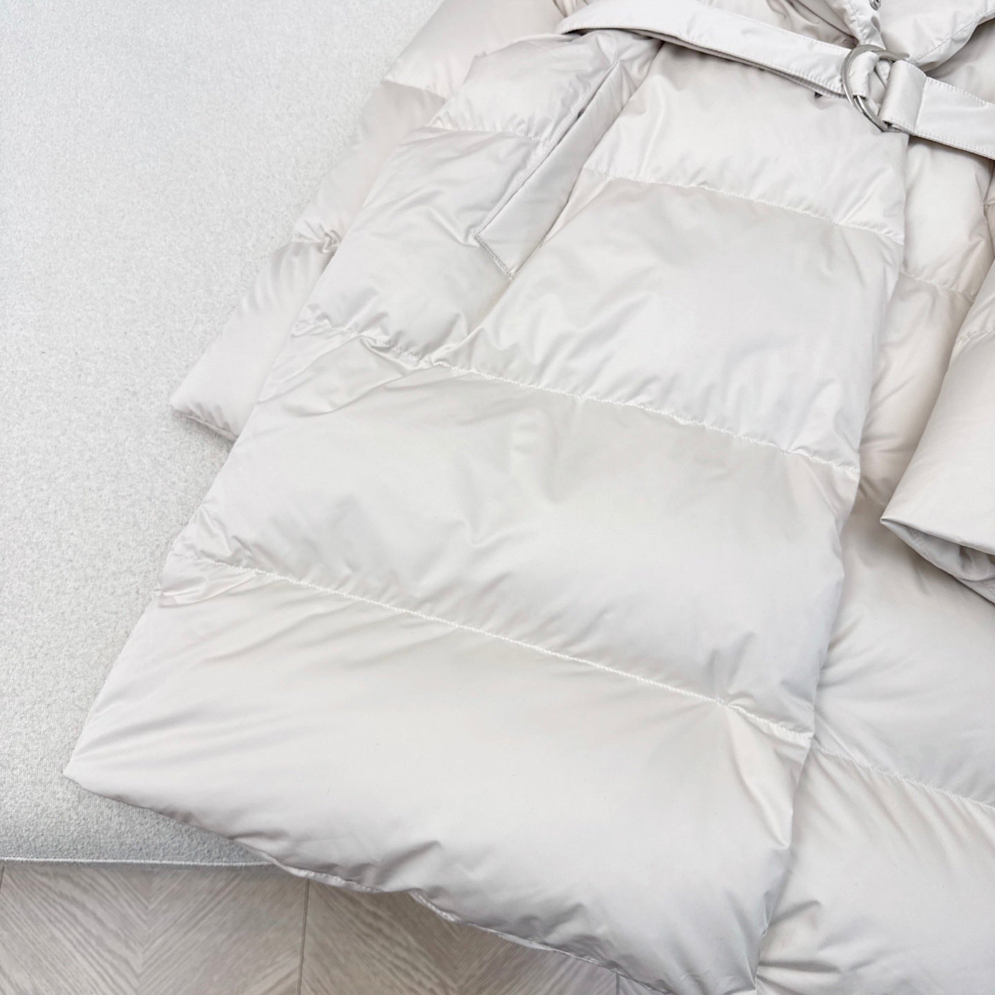 Cream Women's Long Puffer Coat with Belt and High Collar