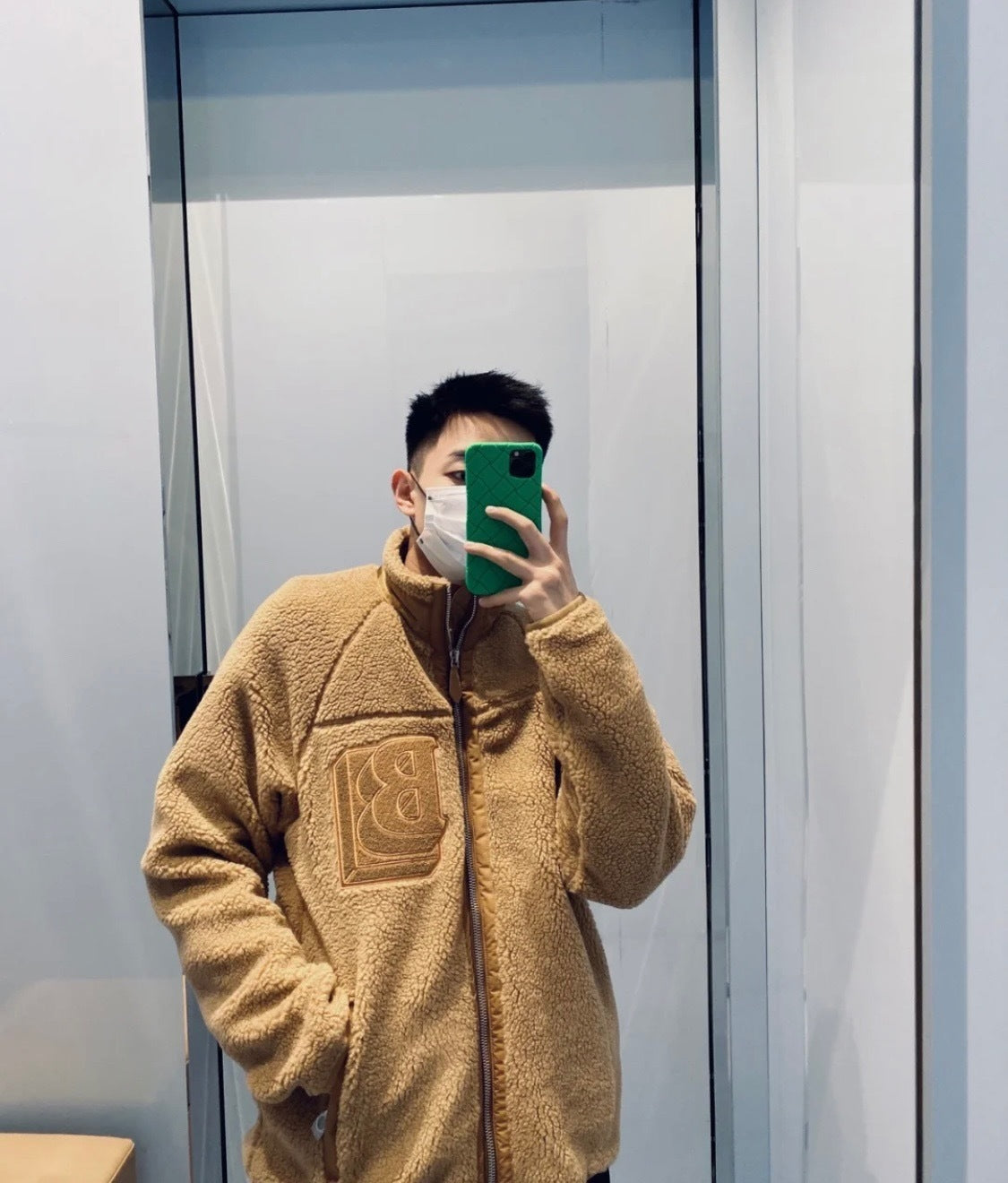 Tonal Piping: The zipper and side pockets are reinforced with technical piping to maintain the structure of the high-pile fabric.