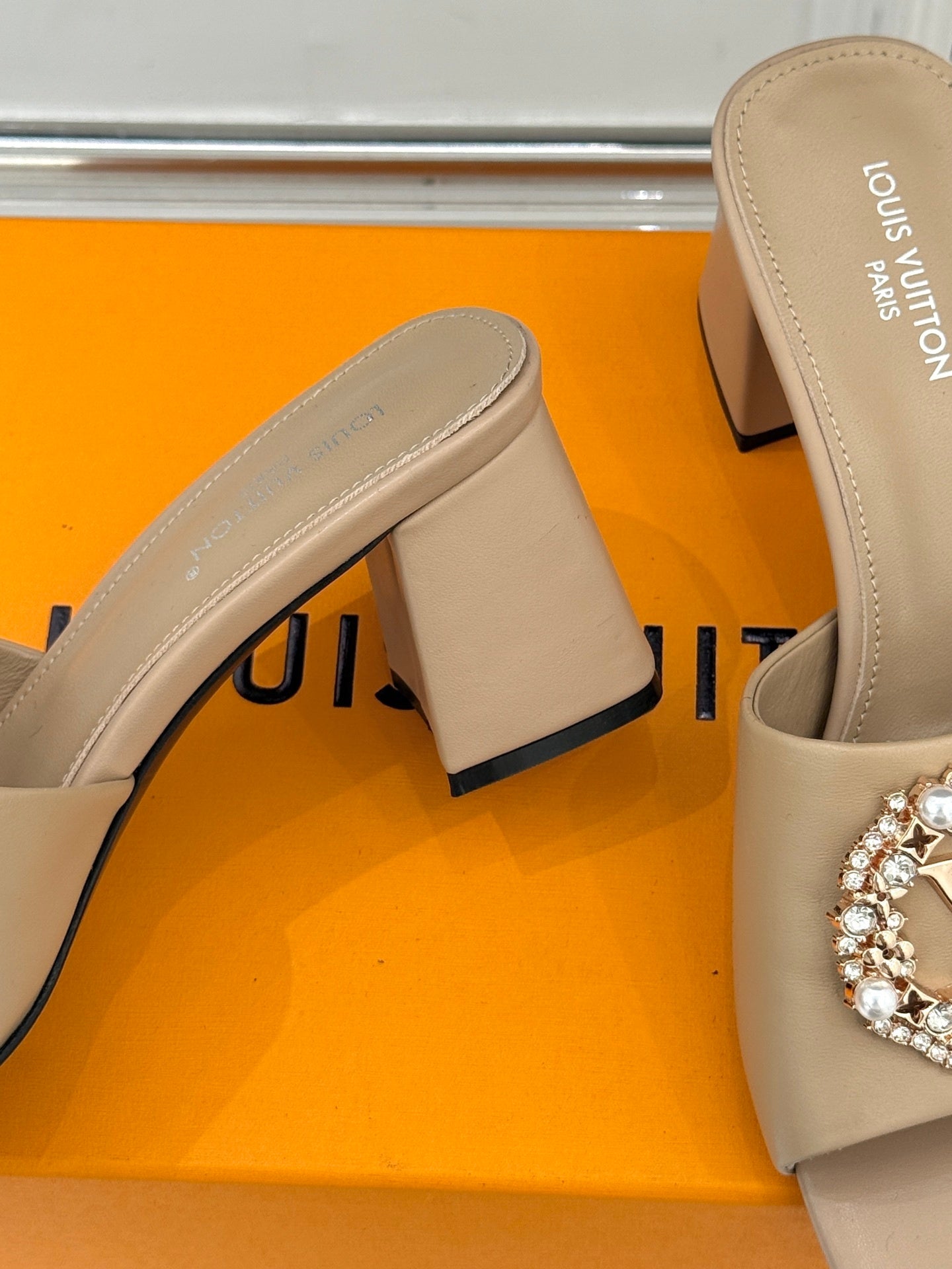 LV Madeleine Mule – Crystal & Pearl Brooch Block-Heel Slide